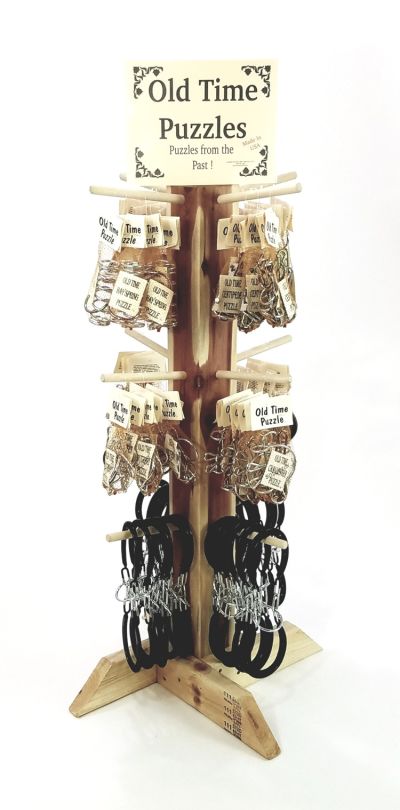 The Old Time Hay Spring Puzzle is a unusual wire disentanglement puzzle. Big spring & metal ring come amazingly attached. One of the few Old Time Puzzles that can be put together different making a whole new challenge. It comes bright zinc plated with the solution ring plated gold zinc. Each Puzzle comes individually packaged with the disentanglement solution on the inside of the net bag. Order in bundles of 6. Can be displayed on our Old Time Puzzle display